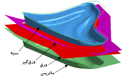 در این فصل آموزش پیاده سازی فرآیند کشش تک مرحله ارائه می شود. اجزاء قالب برای شبیه سازی فرایند کشش در شکل نشان داده شده است.